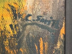 Original oil on Masonite board, early work,. Signed bottom right and has a COA. Size: 16×20 with wood frame, very fine.