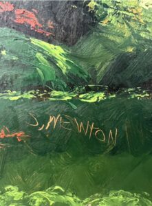 Sam Newton. oil on orange-peel upson  Florida Highwaymen Painting. . African American Highwaymen Folk Art, evolved from the Backus Indian River School Art Colony.